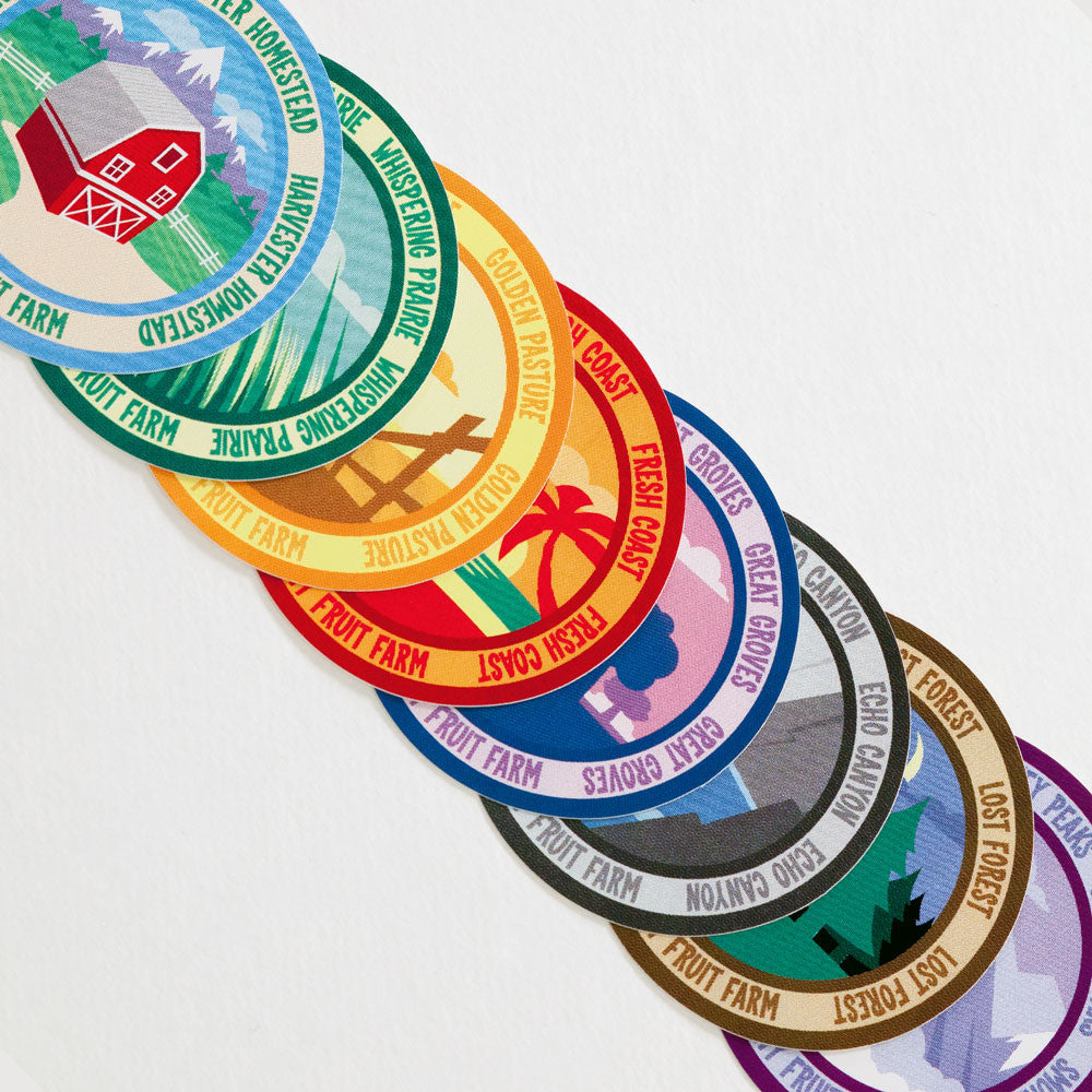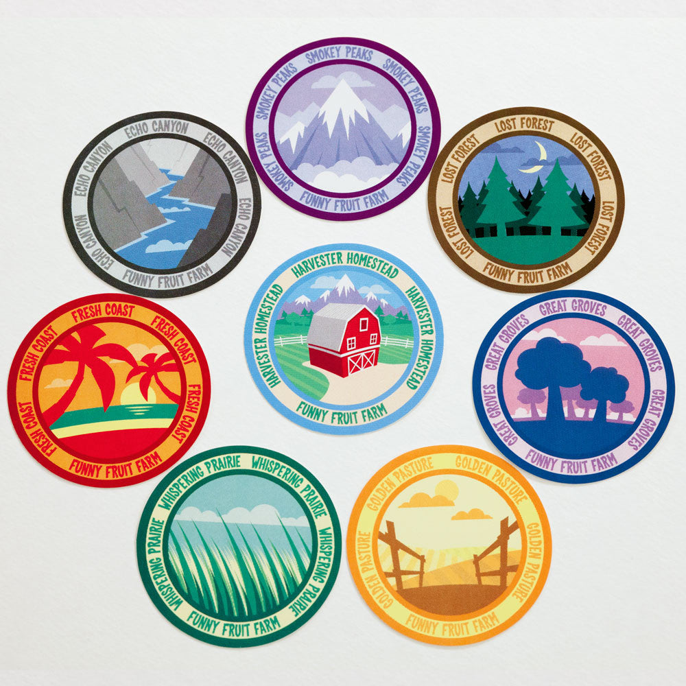 8 Farm Badges. Printed on cool, premium vinyl stickers.