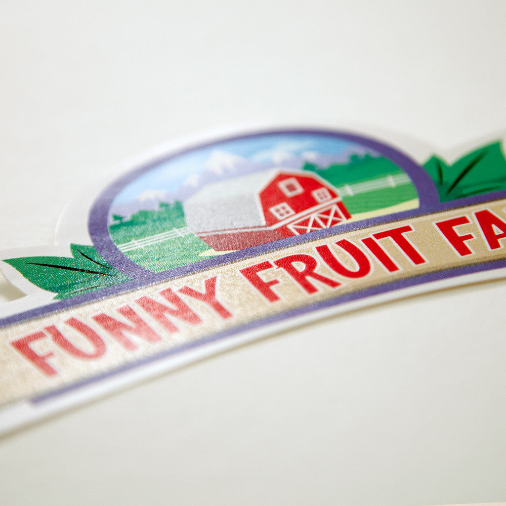 A great big Funny Fruit Farm logo sticker. Great for lunchboxes, notebooks, and more!